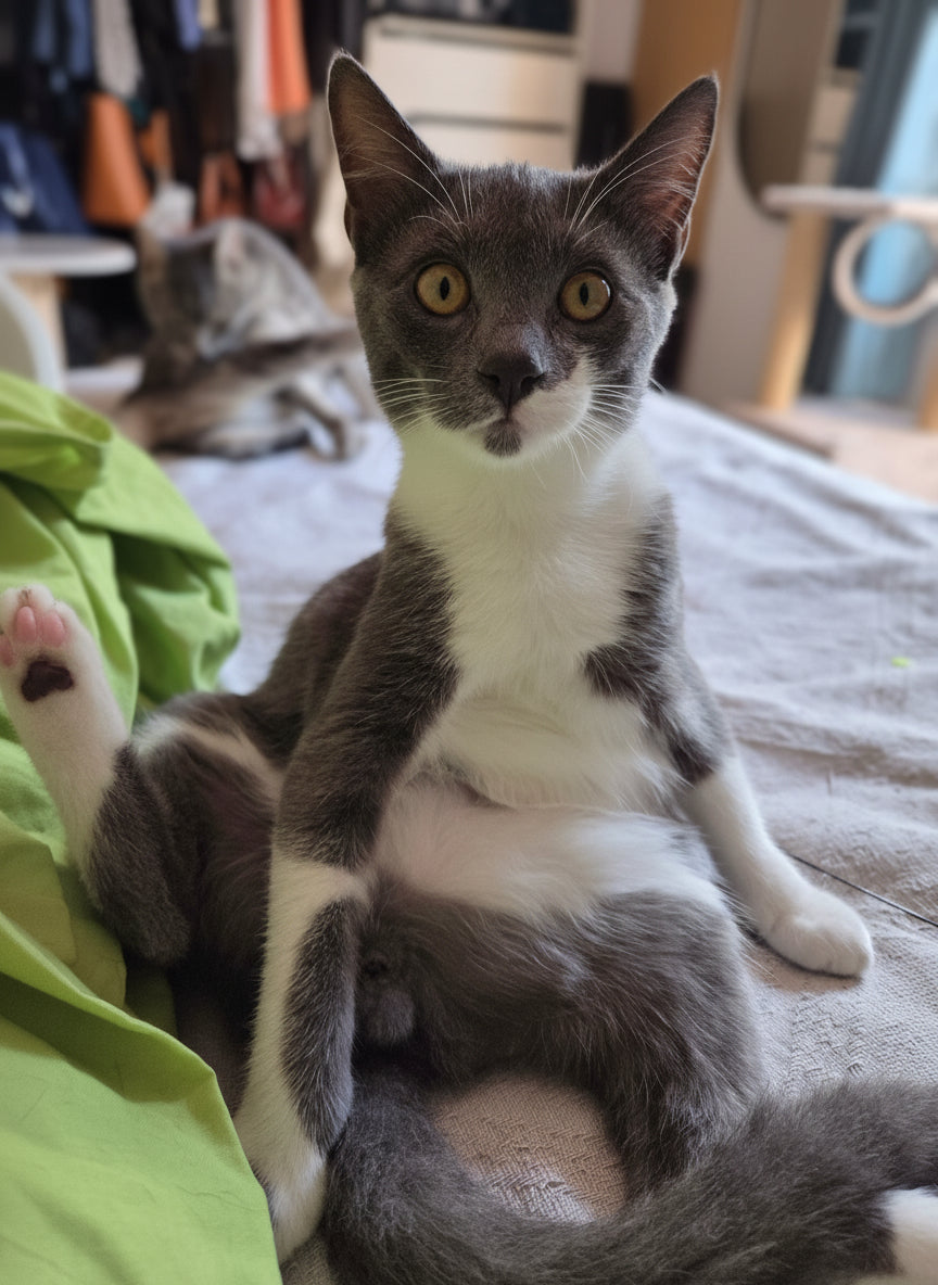 Je suis très vif et curieux, mais j’aime aussi les moments câlins avec les humains, bien installé en ronronnant.